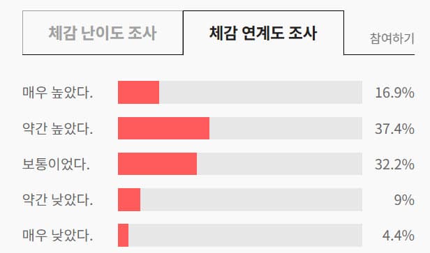 - EBS와의 연계는 54%이상으로 체감함. EBS 문제를 활용했을 경우, 어느정도 도움이 됐을 거라고 추정