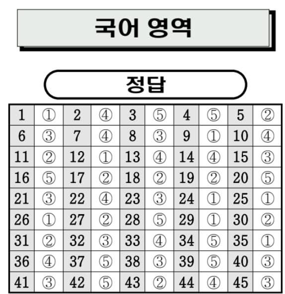 2025년 9월 고1 모의고사 국어 답안지