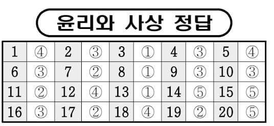 2025년 9월 고2 모의고사 윤리와 사상 답안지